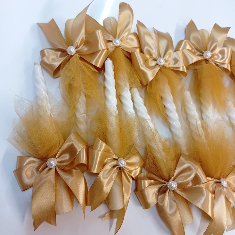 Lilin pita satin hias tile Gold / pita double / 2 layer / Holy Matrimony / Pemberkatan Pernikahan / Ulang tahun